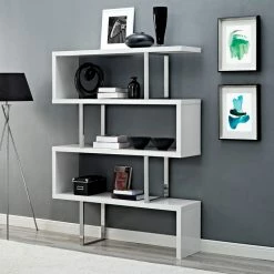 Pursue adventure at every turn with the Meander Bookshelf. Symmetrically designed to imbue a fluid sense of movement, Meander outperforms other bookshelves and stands by the sheer nature of its design. Made of durable fiberboard, with walnut grained or white veneer, Meander is made secure by polished steel supports that steady the progressive nature of this piece. Perfect for contemporary living rooms, Meander proudly displays books and accent pieces, while leaving guests to marvel at this winding conversation piece.