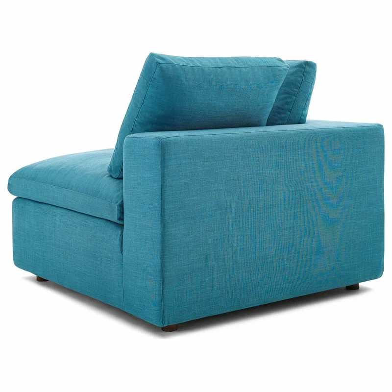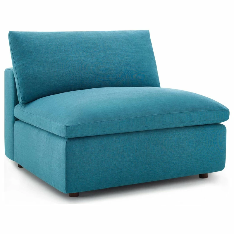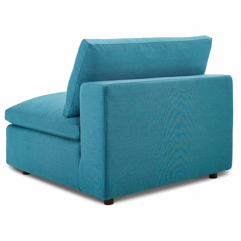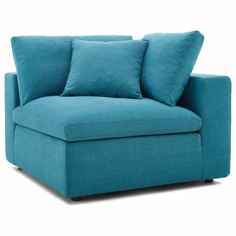 A haven for cozy relaxation, Commix features plush comfort, clean-lined design, and spacious profile, that makes an attractive statement in the modern home. Upholstered in soft polyester and linen fabric, this living room set comes with solid wood construction and cotton and down cushions for a luxurious sink-in feel. Commix comes with generously padded down feather and cotton cushions, and padded foam bases, making this sectional sofa collection perfect for the living room, family room, or game room. Made for sprawling out or curling up, Commix beckons you and guests to sit and stay a while. Includes plastic foot glides. Weight Capacity: 331 lbs. Set Includes: Two – Commix Down Filled Overstuffed Armless Chair Two – Commix Down Filled Overstuffed Corner Chair Two – Commix Down Filled Overstuffed Ottoman