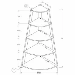 Add the perfect corner piece to your living room, hallway, home office, or den with this cappuccino accent etagere/bookcase complete with four 1″ thick tray style shelves. This contemporary/transitional shelving unit blends well with any decor providing additional display space without sacrificing style. Tipping pervention hardware included.