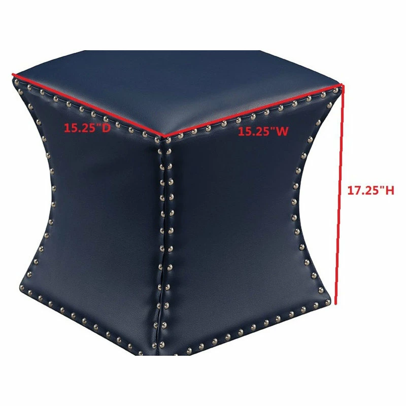 With its shapely concave silhouette, smooth leatherette upholstery and nailhead trim, the Rylen Nailhead Ottoman adds form and function to your design. This versatile piece punctuates your space with trendy, contemporary appeal and can be used as both a place to kick up your feet and a spot to sit.