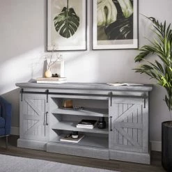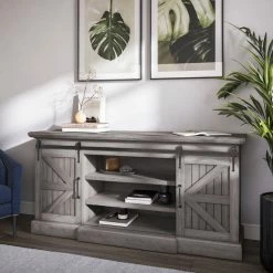 Outlet 💯 Belleze 60″ Universal Stand Console Fit TV’s Up To 65″, Stone Gray 🎁