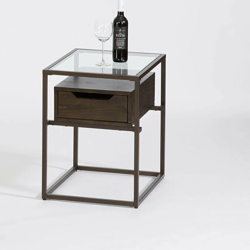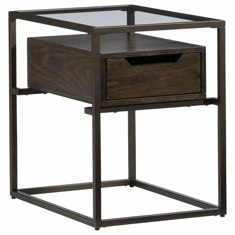 A cool iron base with drawer storage designed to look like it is floating. Finished off with a tempered glass top adding another great element to this modern combination. Perfect for your contemporary/transitional table needs. The gorgeous “Contemporary Umber” finish makes quite a sophisticated statement.
