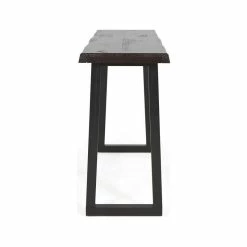 The versatile Jennings Sofa Bar Table is a great piece that will work well in your living or dining space. This counter height table can be used as a Console/Sofa Table or can be paired with the Jennings stool for use as a dining solution in small areas. Sturdily constructed of solid pine with a live edge top in a rustic, distressed cherry finish and a solid pine ebony finished base. Your purchase includes one counter height table.