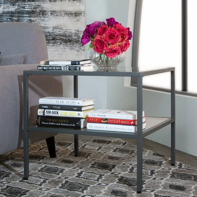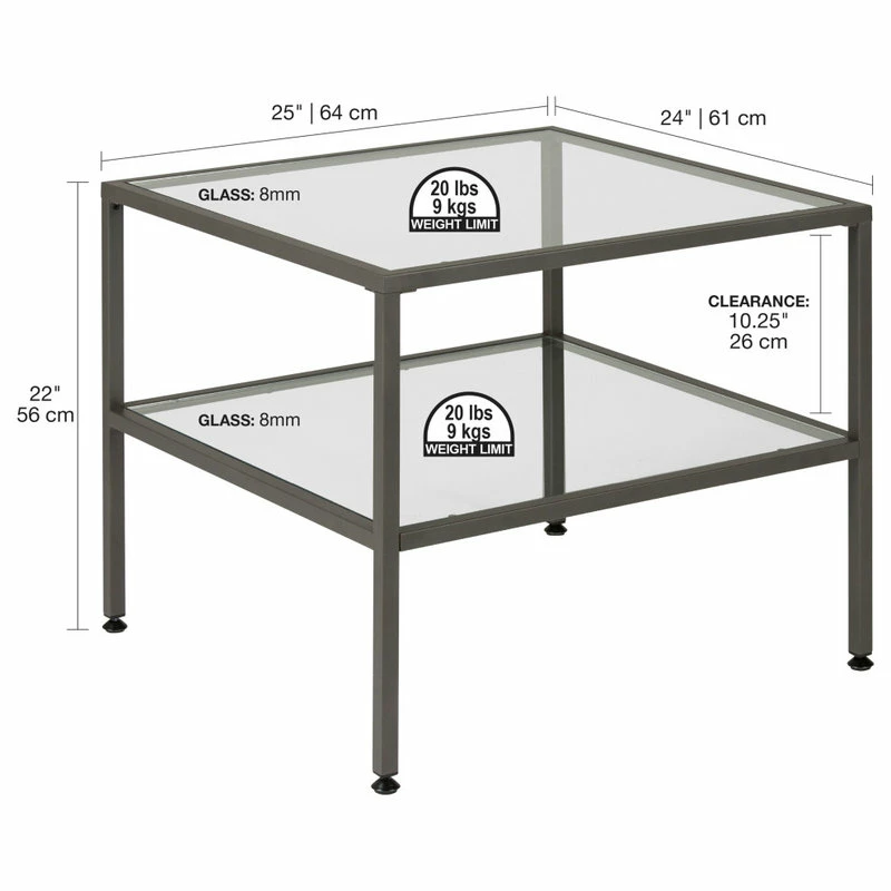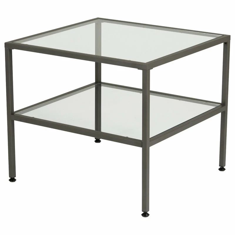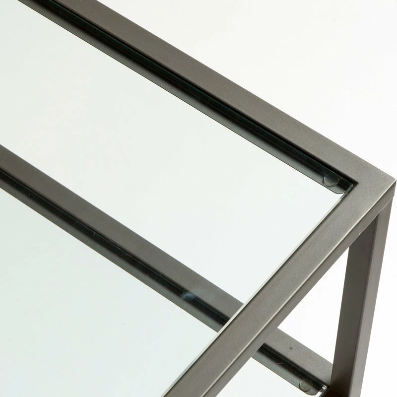 The Camber Collection of occasional tables offers a simple, modern design to any living room or entryway. These tables combine a stylish slate grey metal frame with durable 8 mm clear tempered glass. The simple lines and neutral colors easily complement any room. The multiple tiers provide plenty of display space for photos, collectibles or everyday necessities.