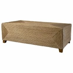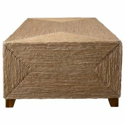 Equal Parts Relaxed And Refined, This Coffee Table Embodies Casual Coastal Style. Wrapped In Natural Woven Banana Plant, Creating Unique Texture And Concentric Color Patterns, Resting On Wooden Feet Finished In A Light Walnut Stain.