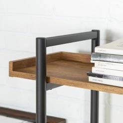 This 5-shelf urban pipe bookcase is perfect for a trendy, industrial-chic look. With a durable metal frame, and a sleek woodgrain finish made from high-grade manufactured wood, this piece is reliable to hold all of your books, trinkets, and collectables, while complementing any home office, hallway, living room, or bedroom.