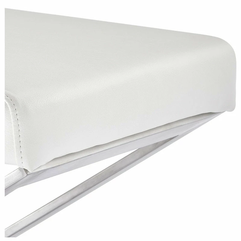 Budget ✨ Zuri Furniture Modern Fenix Ottoman Smooth White Leatherette Brushed Stainless Steel Base 🌟