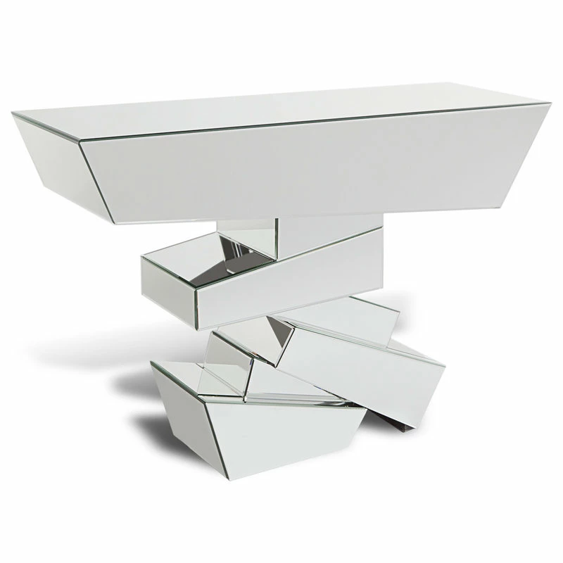 The Naxos Console Table is a unique combination of mirrored finish and sharp geometric angles. The reflective quality of this table gives it a personality all its own and is sure to be appreciated for years to come by those with discerning taste. The Naxos is a piece of artwork in itself and an ideal choice for showcasing a beautiful contemporary area rug.